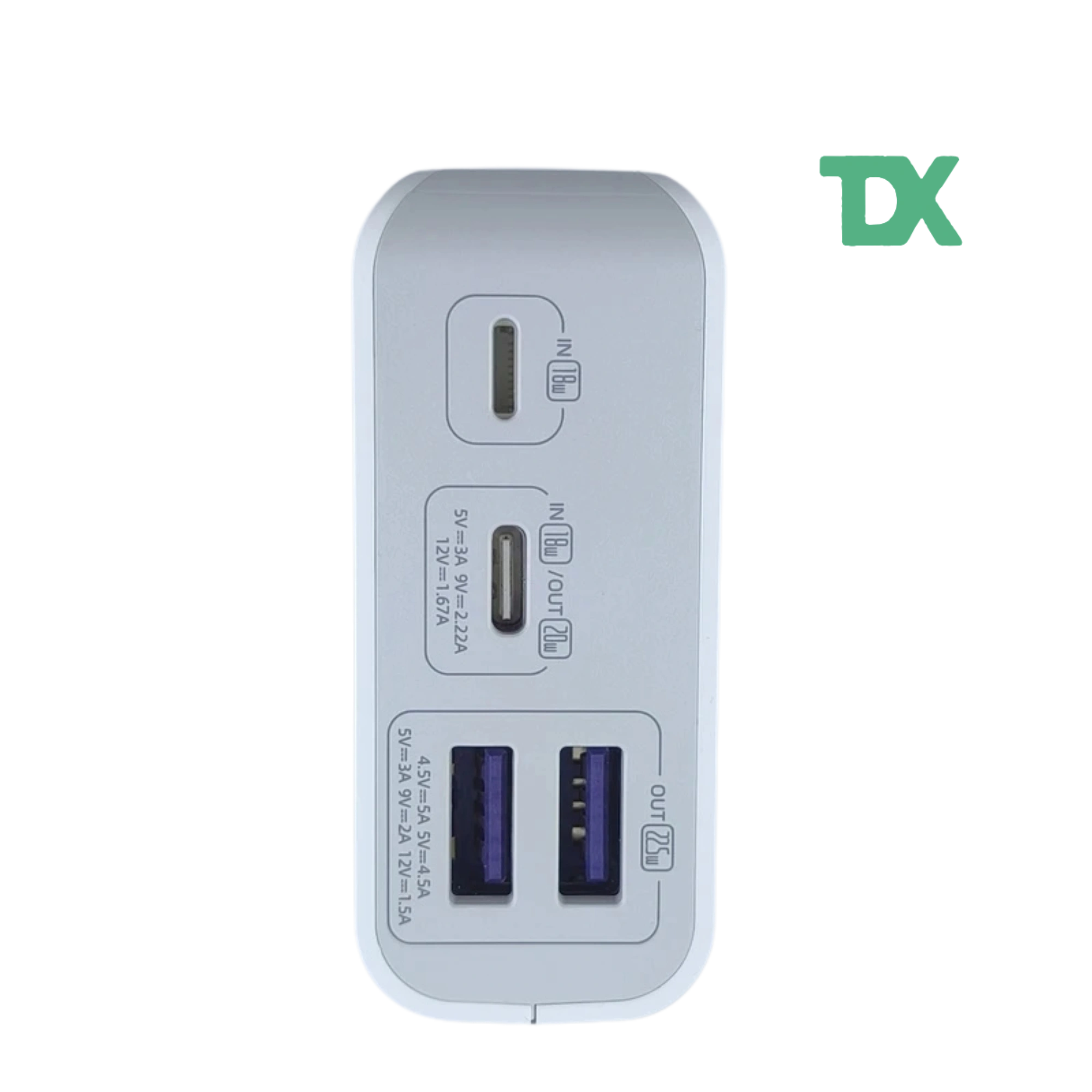 در بخش بالایی دستگاه، دو پورت خروجی USB-A، یک پورت ورودی Micro USB و یک پورت Type-C قرار دارد که قابلیت شارژ همزمان چند دستگاه را فراهم میکند.